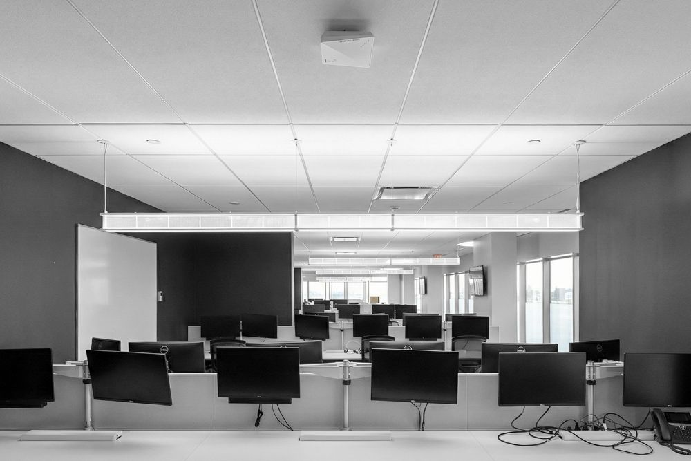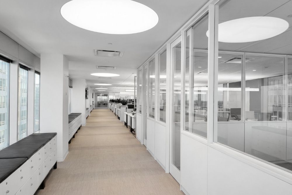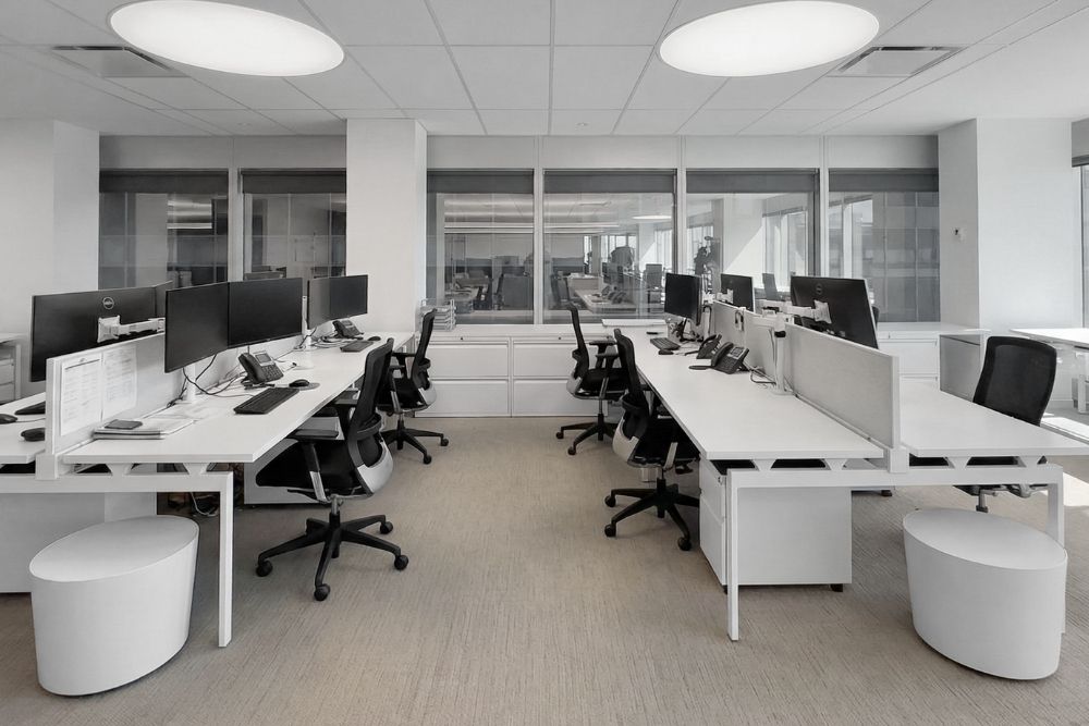 Sleek ceiling designs with integrated lighting complement a streamlined, clutter-free layout, creating a calm, professional environment that supports focus, efficiency, and collaboration.